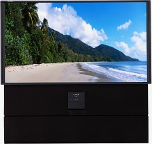 Sharp's latest 55" 55R-WP5H and 61" 61R-WP5H rear projection HDTV monitors can display all HDTV signals in 1080i resolution. In addition, they incorporate Sharp's DDFC-1080 technology to upconvert 480i analog signals to 1080i, with full 3:2 pulldown. Both include dual HD component video inputs and one RGB-HD input. With Sharp's "Twin-1080" circuitry, two different programs in any format can be shown side-by-side in full 1080i resolution. Other features include a 10-bit 3D-Y/C comb filter, velocity scan modulation, 24-watt audio systems and a V-Chip. The 55R-WP5H is available for $3499, while the 61R-WP5H is available for $3999.