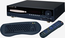 Harman/Kardon has also announced a new "all-in-one" home entertainment convergence product, the DMC-100. The new device incorporates a built-in DVD & CD player, broadband Internet access with web browsing and email, 30 gigabyte hard drive, MP3 playback plus a variety of audio, video and data connections. It comes complete with a wireless keyboard and full remote control. The DMC-100 will be launched this spring for $899, plus $9.95 per month for the required ZapMedia service.