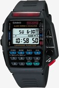 Speaking of Casio, the TV-28 is eerily similar to the Casio CMD40B-1, a spiffy remote watch that is designed to control a TV or cable box. The CMD40B-1 includes power, channel, volume and keypad buttons, can learn up to 16 infrared codes and includes a 8-digit calculator, stopwatch, alarm and more. Somewhat disappointingly, Casio has not been developing their remote control watch line in favor of more "interesting" products such as the recently introduced digital camera or MP3 watches. When will they learn, eh?