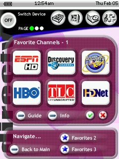 Finally we have the favorites page within the DirecTV interface. This page allows the user to setup a graphical one-touch button to their favorite channels. This is expandable to allow as many icons as desired and can even be edited to show a categorization of channels in addition to favorite choices.