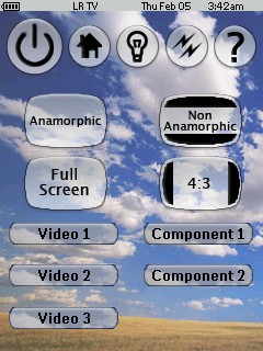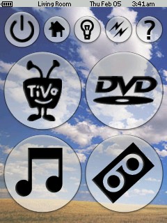 This layout is an evolution of my TSU3000 layout. It is activity-based and makes heavy use of macros to control my two zones of equipment and home automation. The layout of hard and soft buttons for each device follows a pattern, making it fairly simple to learn to use. It also contains a fairly extensive help system. This look is the result of me playing around with transparent buttons.
