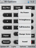 | Steve Avery - File Menu Style Based on my pronto design. Consistant menu system accross all pages. Menus overlay page for a file menu/ PC menu look and feel. Designed for a clean looking screen but with all options within a few clicks. Activity based design extended to PVR (Sky+) to automatically change the hard buttons based on whether you are watching live TV or recorded TV. "Please wait" screen added. "Jump" macro that jumps to all screens the returns home added. The Nevo is faster once a screen is loaded into memory. Jumping to all screens loads all screens. Power off has confirm screen (usefull when your TV has a 3 minute on/off time :) Menu bitmaps created with MS paint (OMG). All other buttons from Nevo. Added a beep macro. Rather than using beeps directly using this shortcut allows beeps to be blobally changed by changing just one macro. |