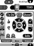 For: Philips TS-1000 By: Maarten Landzaat | Maarten Landzaat's Remote Highlights include: all TV (32) and radio (40) channels on one page; empty home icon (press left hard button for Home); right hard button switches off everything, always; shortcuts from TV to DVD and vice versa; fast and easy selection of HDD programs using hard keys; mute key pauses source (DVD, CD, VCR, cassette); no fancy logos, but optimized for minimum # of keypresses; Yamaha tuner banks made invisible for user; Ada program included, generates 40 Yamaha radio device panels; never "resume off" when switching off DVD/HDD; easy double cassette deck manipulation. |