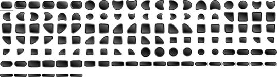 David Staas' Dark Buttons Dark gradient buttons in a variety of shapes and sizes, including several sets of navigation (u/d/l/r) buttons. See README.pdf in the ZIP file for a proof sheet of all of the bitmaps and their filenames. These buttons are dark enough to take white text well, and look good on a white or light grey background. Enjoy! |
