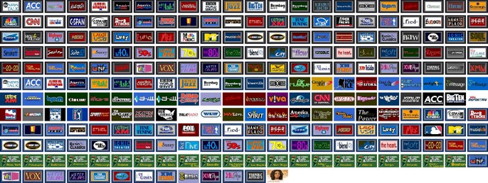 Daniel's Collection of Honkin' Big Television Logos Tired of fiddling with teeny tiny channel logos? If you're working on your own remote control layout you may need images that are larger than those typically found on logo websites, ones that are more easily edited to your purposes. This file contains a mix of 111 US and Canadian television logos, in the highest quality form I could locate. The collection is far from complete, it's merely what I was able to find.In most cases the logos are presented in their original file format - GIF, JPG or PNG - and are completely unprepared for use on any remote control: they will need to be cropped, resized and in some cases edited further. Some logos are medium sized, most are large, and a few are positively gigantic (over 1000 pixels wide)! Previews below are shown far smaller than their actual size. |