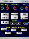 For: UEI NevoSL By: Steve Yon | Steve's Home Theater Two home pages, one with "Steve's Home Theater" Marquee and second is selection page. Customized top bar on main pages (same as bottom navigation bar only 180 deg shift). Complete "Switch" functions to change from one device to another as well as master "tool" page. Many customized graphics etc. |