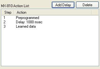 I'm wondering if the Browser isn't the place to go to fix this problem; unfortunately, I am not sure how to use it. I tested creating a macro on the off power button for a tv in the devices. The macro turned the tv off, then 3 secs later turned it back on. It worked in the activities as well. I did this using the browser. First, I would change the pj back to a single press device in the power options menu under Tune Up, just so it doesn't send the power button twice. Next, open up the browser. Double click the pj on the devices screen (if you don't double click, it won't open the pj). Select POWER OFF from the Hard Buttons box on the right. The MX-810 action list should have one command in it, like "Preprogrammed" or "XX.429.POWER". Add the delay. Next, click the "Browse" button in the lower-left of the screen. Open up the WZR file you are working on. Find the pj in the Imported Tree View and select Hard Buttons. Locate and click on the Power Off button on Imported Panel View (Top-right). Select the item in the Imported Action List. Drag it to the MX-810 action list. It should look something like this: