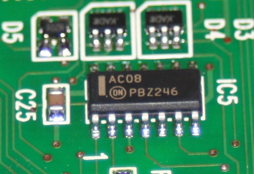 Looks like an ON Semi conductor 74AC08 in the 14-pin SOIC package (top item on list).
