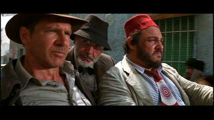 As would be expected, Last Crusade’s video is top-notch – by far the most visually impressive transfer of the three films. A perfectly clean video master has resulted in a striking anamorphic widescreen image packed with fine details, bright and well saturated colors, no artifacting, very little film grain and absolutely no visible edge enhancement. The quality is even throughout, with deep blacks and ample shadow detail. I can see this disc making its way into many home theater demo sessions! The movie occupies 7.3 gigabytes of a dual-layered disc, with the layer change occurring during a good spot at 1:05.54 into the movie, or 0:00.26 into chapter 20.
