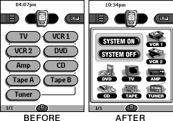 Anything and everything! Philips has developed a truly unique software package that provides complete control over the remote’s user interface. Available as a 4mb download from Philips’ web site, ProntoEdit quickly installed itself under the Program Files folder and created it’s own folder and icons. Also available from Philips’ site is a 29-page professionally formatted Adobe Acrobat manual with over 40 answers to common questions. Although adequate for basic operation and navigation, it can sometimes be wordy in explanations of what ought to be simple methods. After plugging their Pronto into an open serial port, the first function users should perform isn’t actually covered in the manual. "Update Pronto", available under the Tools menu, flash-upgrades the physical remote’s firmware to the latest revision, which includes several bug fixes and new features such as a fourth symbol keyboard. If your Pronto was shipped with a cable you probably already have Apps 4.5 installed, but as an even newer version is now available this procedure is still recommended.