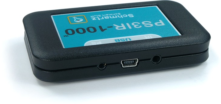 The back of the Schmartz PS3IR-1000 infrared-to-Bluetooth adapter for the Sony PlayStation 3. The PS3IR-500 lacks the “PS” power sensing port.