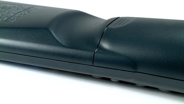 A close-up of the Sony RM-VL700's finger indent, which is on the back of the remote.