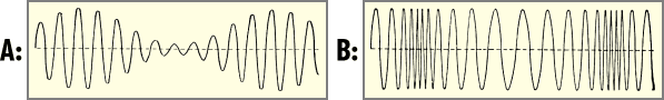 Compare the two boxes below. Which waveform is taken from an AM radio signal?